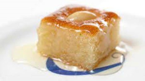 con sémola, coco rallado y almíbar de azúcar. Es un postre suave y húmedo que