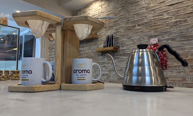 En Aroma Di Caffè ofrecen bebidas de la carta de café de especialidad y cafés tradicionales como el guayoyo, o café con cocuy de penca, un licor artesanal venezolano que cuenta con denominación de origen.